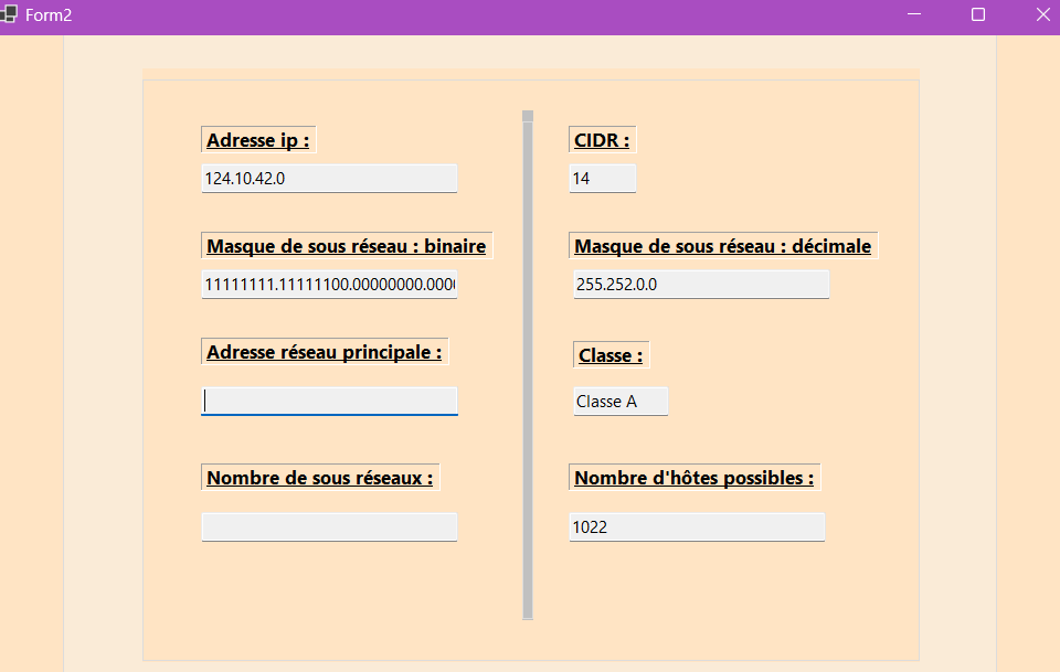 J’ai développé une application C# Windows Forms pour calculer et gérer l’adressage IP d’un réseau. Elle permet de :
